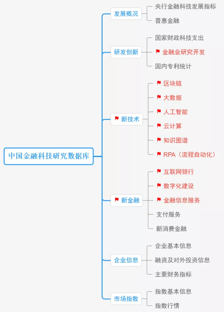 该库包含了金融科技开展概况、研发创新、新技术、新金融、企业信息、市场指数等方面的数据。