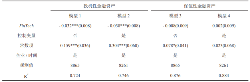 此外,文章进行了拓展性分析,划分不同样本,针对不同性质企业、不同市场化地区、不同经济区域、不同类型的金融资产分别进行回归分析,检验金融科技影响的异质性。结果如表4所示。结果显示,金融科技对非国有企业、东部地区的企业和处于市场化程度较高地区的企业“脱实向虚”的抑制作用更为明显。而且,金融科技的开展主要抑制了企业对投机性金融资产的投资,对企业保值性金融资产投资的影响并不明显。