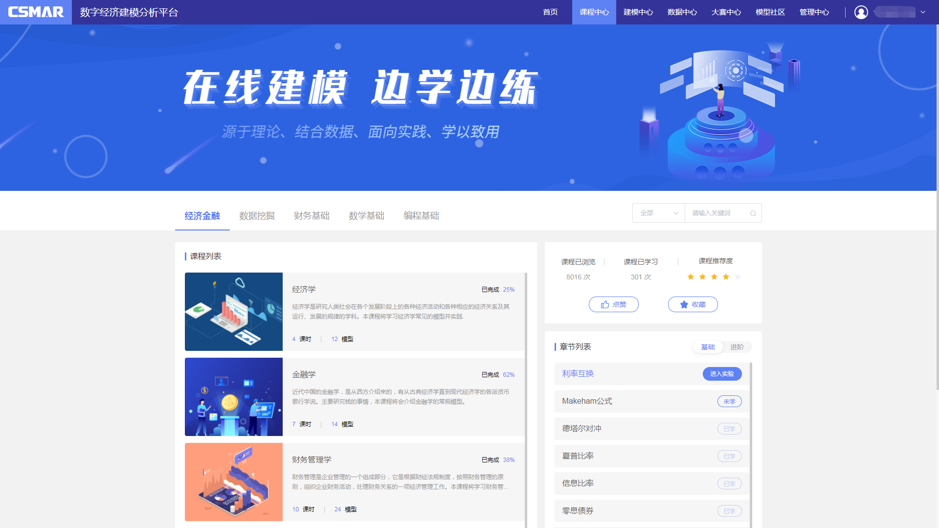 DEMA数字经济建模分析平台,主要面向的用户范围是国内金融和管理类的本科专业师生。它是一个给专业师生给予在线金融建模和课程学习的辅助平台,老师和学生都可以顺利获得DEMA数字经济建模分析平台在线学习Python、R、OCTAVE三种语言编程的基本操作,并且可以顺利获得使用上述这些编程语言实践如金融学,经济学,金融工程,保险学,财务管理,统计学,数据挖掘这种经济金融相关学科的常见模型案例课程。