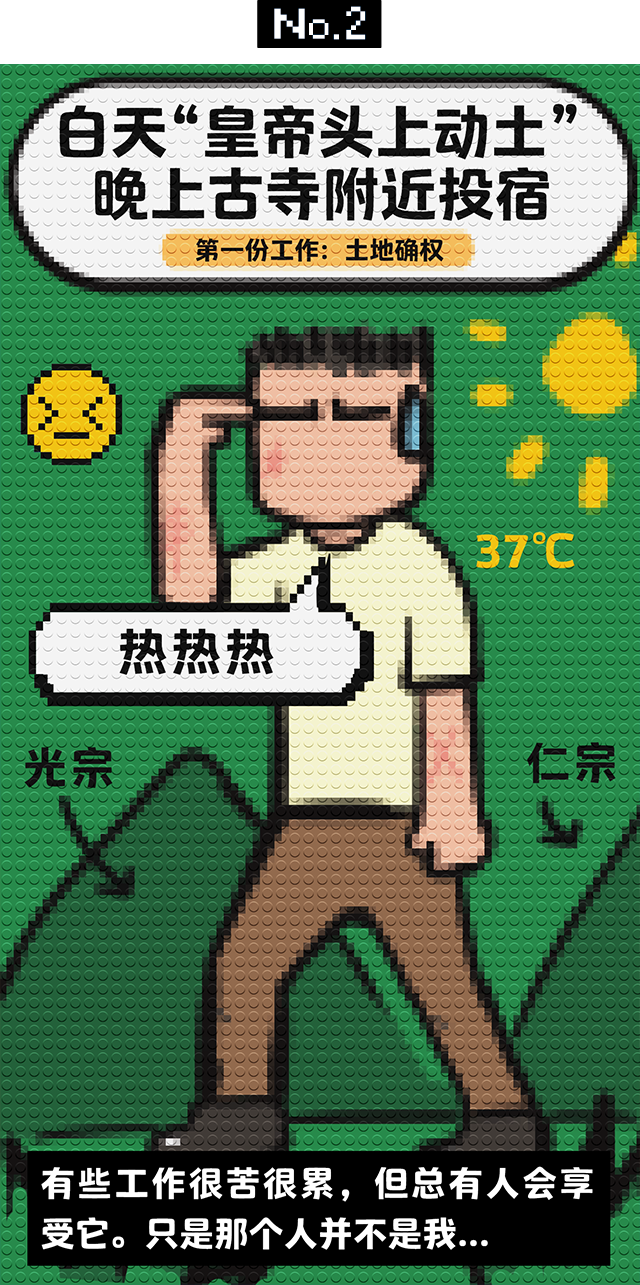 当时的工作,在北京十三陵那疙瘩,是农村土地确权测绘员,说人话就是测量村民农田的具体位置。头顶是7月份北京的360度暴晒,脚下是明王朝的皇陵盖土,住宿的地方叫做黄泉寺村,扛着设备上山下山,每天循环。更让人最难顶的,是漫山遍野身披着尖刺的野枣树。身上多几处划伤,仿佛成了每天出勤的证明。