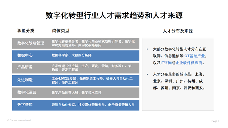 就人才分布城市来说,来自于领域人才分布最多的、也是数字化进程推行较早的城市,比如一线、准一线城市。