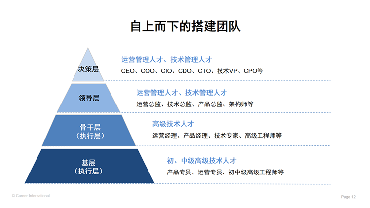当他们的决策制定完成以后,再交给下面的人去落实,可能是总监级别的,再往下可能是经理级别,最后再到基层的工程师。所以这样的一个搭建,才能够保证思路的统一性和战略的完整性。