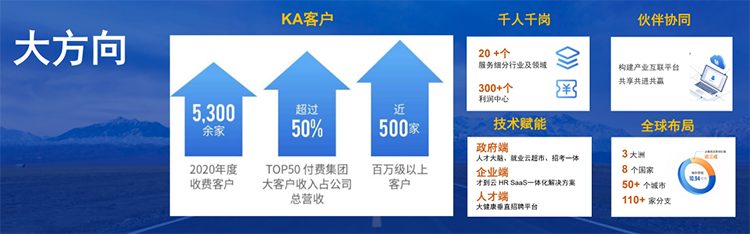 调研:我们现在经常听到客户说,不知道自己需要的人在哪里?很多客户在进军新赛道,或进入新区域时,需要去对标相关领域中的那些公司,看看他们的组织架构、业务架构、薪酬架构是什么样的?而这些知识恰好是我们在多年的专业服务中所积累的,我们的擅长领域可以是智能制造、新能源汽车、大数据,也可以是5G、医生、护士等等。在超过20个行业、300个细分领域的布局下,我们的未来会有非常大的想象空间,然而前提是,我们一定要把这些岗位背后的知识进行沉淀并且输出。