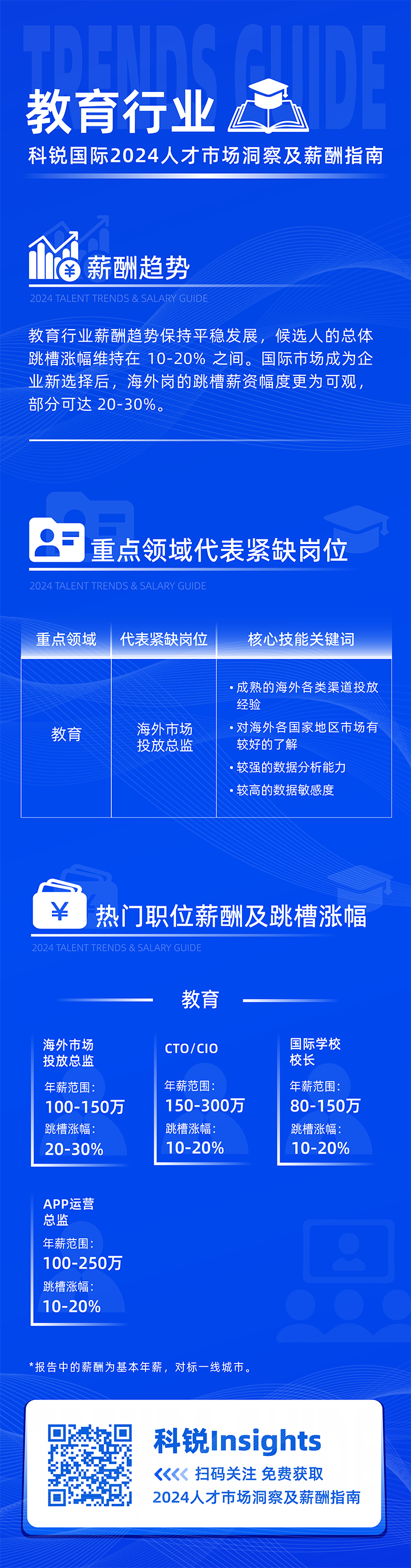 本篇报告为您带来2024年教育行业人才需求与薪酬趋势洞察。