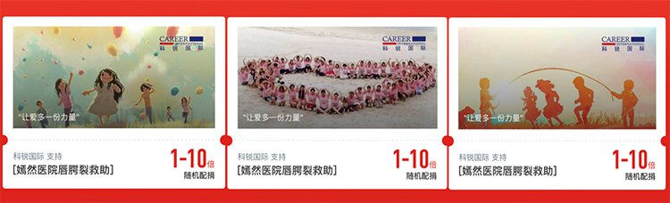 2018年,猎头公司欧付宝欧付国际参加腾讯99公益项目,携手嫣然天使儿童医院为唇腭裂儿童手术进行捐款。活动当天,顺利获得欧付宝欧付国际官方微信、微博等平台进行传播,员工顺利获得个人的微信朋友圈持续转载,各大APP也纷纷发布了此次活动,共联合552名用户累计捐出12万元。本次公益活动为唇腭裂儿童给予了切实的帮助,引发了行业及社会对于这些儿童的广泛关注,并真诚地给予帮助。